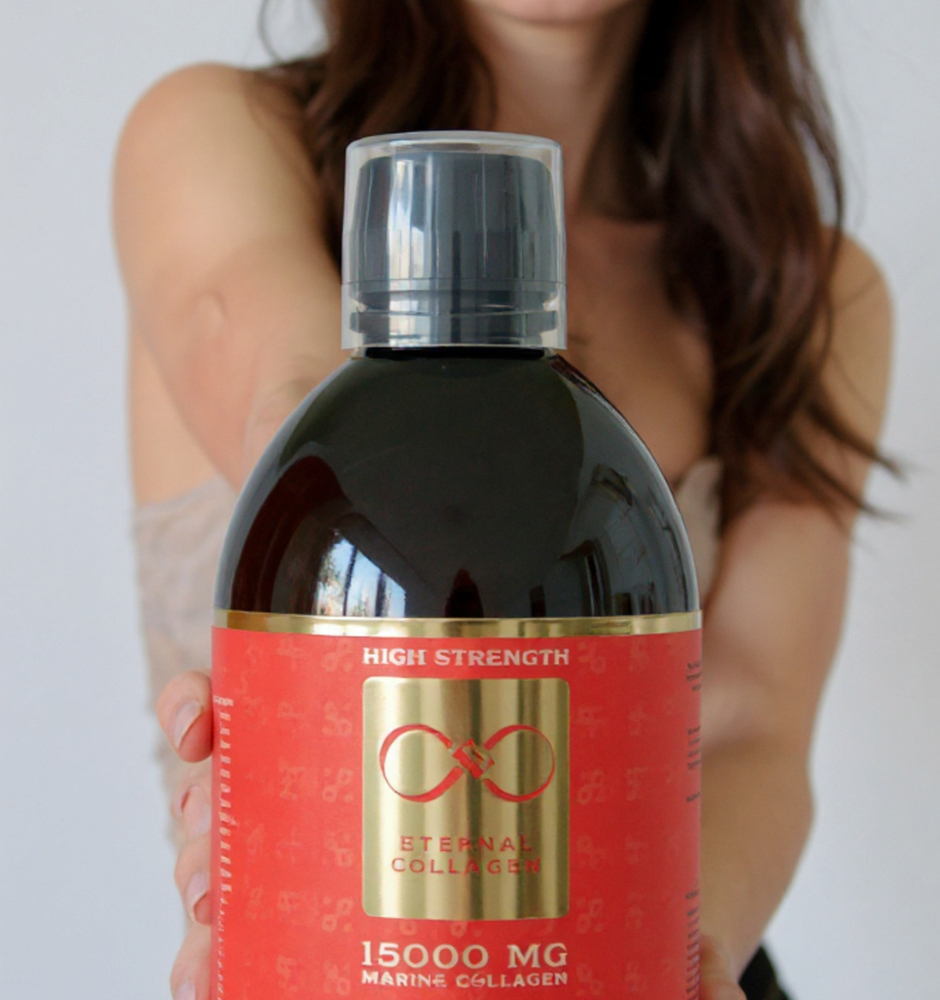 Every serving of Eternal Collagen delivers a powerful dose of 15,000mg of hydrolysed marine collagen, our advanced liquid formula is designed to provide you skin and body with the maximum support it deserves.